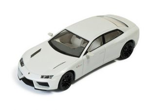 This Lamborghini Estoque (2008) Diecast Model Car is Metallic Pearl White and has working wheels and also comes in a display case. It is made by IXO and is 1:43 scale (approx. 11cm / 4.3in long).