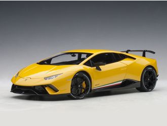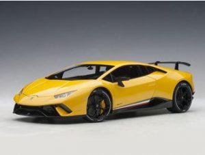 This Lamborghini Huracan Performante (2017) Composite Model Car is Yellow and features working wheels and also opening bonnet, boot, doors. It is made by AUTOart and is 1:18 scale (approx. 24cm / 9.4in long).