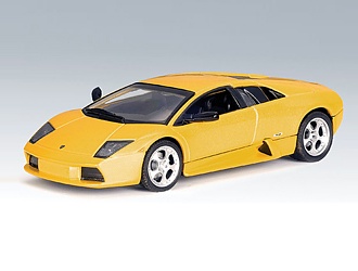 This Lamborghini Murcielago (2001) Diecast Model Car is Yellow and has working wheels and also comes in a display case. It is made by AUTOart and is 1:43 scale (approx. 9cm / 3.5in long).