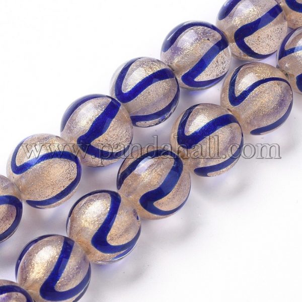 Lampwork Beads Strands, Gold Powder, Round, MarineBlueSize: about 12mm in diameter, 11~11.5mm thick, hole: 1.6mm; about 30pcs/strand, 13.1”(33.5cm).
