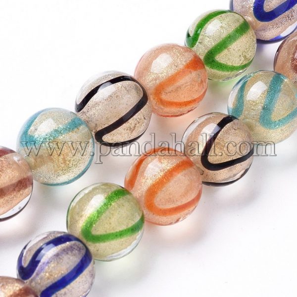 Lampwork Beads Strands, Gold Powder, Round, Mixed ColorSize: about 12mm in diameter, 11~11.5mm thick, hole: 1.6mm; about 30pcs/strand, 13.1”(33.5cm).