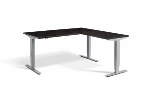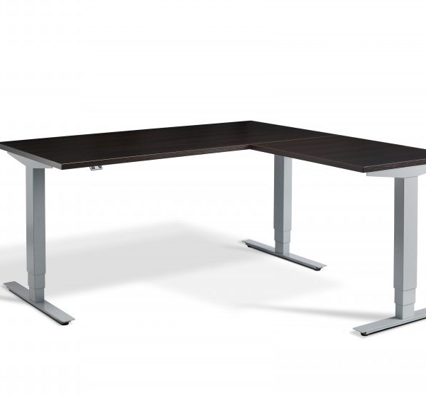 Lavoro Advance Height Adjustable Corner Desk- Silver Frame- 1600 x 1600mm- Wenge The Advance desk from Lavoro Design is an ideal choice for the office or home office. This corner desk features a sturdy and high quality height adjustment triple motor system, with anti-collision motors and many accessory options. With the largest height variation in the Lavoro range from 640mm-1300mm making it ideal for any environment. This means that not only can the user adjust from sitting to standing as they please- which is said to promote health and productivity in the workplace- the desk is fully adjustable for inclusivity of all employees needs. The Advance range is wheelchair accessible. Made from high grade steel, the Advance adjustable desk has a 160 KG max load weight and is available in a range of 9 table top finishes and additional frame colour options.