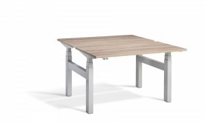 Lavoro Duo Dual Motor Height Adjustable Desking System- Two Person Office Workstation- Grey Nebraska Oak The Duo back-to-back desk allows two users to independently raise and lower their workspace whilst being connected by a single frame. The height adjustable desk features a sturdy and high-quality dual motor system. The Duo has a height adjustment range from 640mm-1300mm making it ideal for all users! This means that not only can the user adjust from sitting to standing as they please- which is said to promote health and productivity in the workplace- the desk is fully adjustable for inclusivity of all employees needs. The Advance range is wheelchair accessible. Made from high grade steel, the Duo adjustable desk has a 120 KG max load weight per workstation. The frame width can extend from 1150mm to 1750mm making it suitable for any top up to 1800mm.