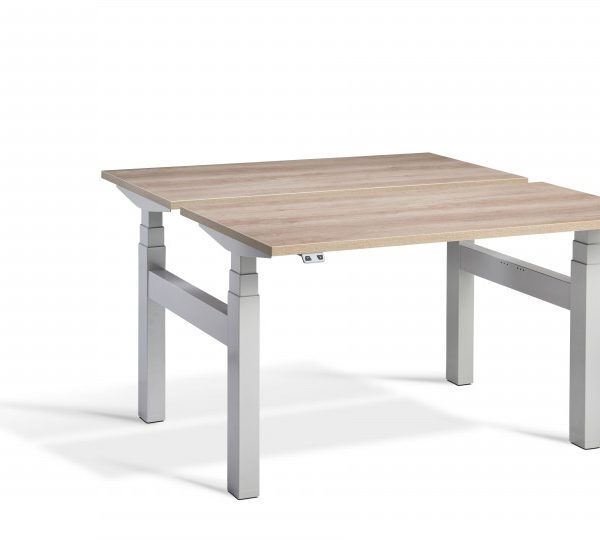 Lavoro Duo Dual Motor Height Adjustable Desking System- Two Person Office Workstation- Grey Nebraska Oak The Duo back-to-back desk allows two users to independently raise and lower their workspace whilst being connected by a single frame. The height adjustable desk features a sturdy and high-quality dual motor system. The Duo has a height adjustment range from 640mm-1300mm making it ideal for all users! This means that not only can the user adjust from sitting to standing as they please- which is said to promote health and productivity in the workplace- the desk is fully adjustable for inclusivity of all employees needs. The Advance range is wheelchair accessible. Made from high grade steel, the Duo adjustable desk has a 120 KG max load weight per workstation. The frame width can extend from 1150mm to 1750mm making it suitable for any top up to 1800mm.