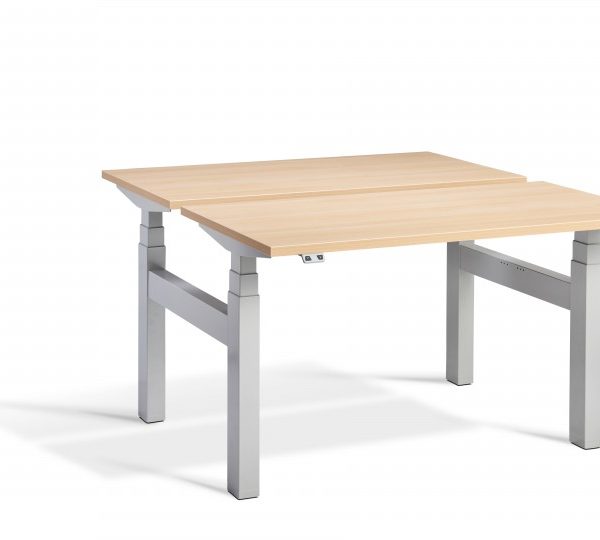 Lavoro Duo Dual Motor Height Adjustable Desking System- Two Person Office Workstation- Oak finish The Duo back-to-back desk allows two users to independently raise and lower their workspace whilst being connected by a single frame. The height adjustable desk features a sturdy and high-quality dual motor system. The Duo has a height adjustment range from 640mm-1300mm making it ideal for all users! This means that not only can the user adjust from sitting to standing as they please- which is said to promote health and productivity in the workplace- the desk is fully adjustable for inclusivity of all employees needs. The Advance range is wheelchair accessible. Made from high grade steel, the Duo adjustable desk has a 120 KG max load weight per workstation. The frame width can extend from 1150mm to 1750mm making it suitable for any top up to 1800mm.