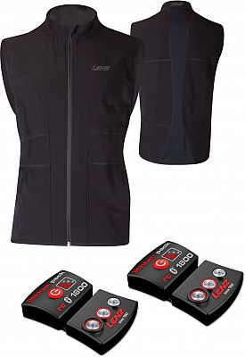 breathable vest with 2 heating elements in the kidney and back area maximum comfort as well as mobility thanks to 4-way stretch and highly elastic seams fits under clothing thanks to minimum volume disperses moisture perfectly and dries out again quickly wind and water repellent and non-abrasive (no peeling effect) zip protection system fleece insert in collar area, inner pocket machine washable at 30°C light lithium packs fit all models of lenz heat socks, heat vest, heat bandage and LED system attach lithium pack to the vest via press studs heat can be regulated via 3 settings on the lithium pack heat can be continuously regulated remotely via smartphone (Bluetooth smart ready) heat development for up to 20 hours short charging time flexible plastic case
