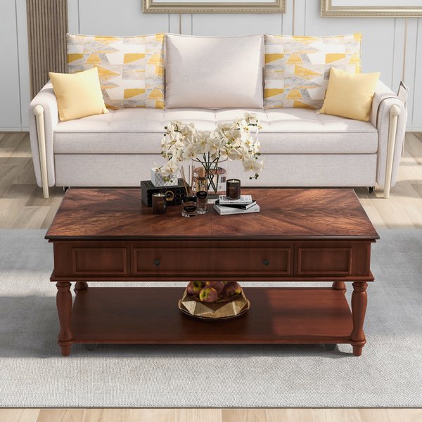 Living Room Retro Cocktail Table Coffee Table Easy Assembly Movable with Caster Wheels for Livingroom