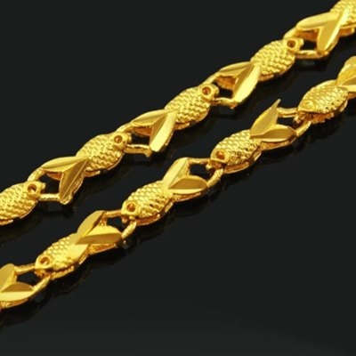 Long 46cm Wide 3mm Full Fish Real 24KT Gold Chain Necklace NL80