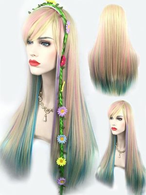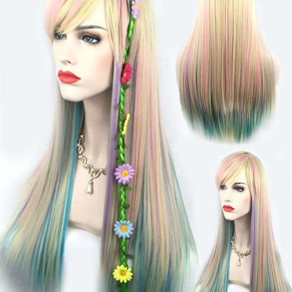 Long Side Bang Colorful Rainbow Straight Party Cosplay Synthetic Wig