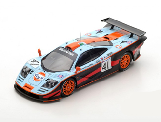 This McLaren F1 GTR (Le Mans 1997) Resin Model Car is Blue and features comes in a display case. It is made by Spark and is 1:43 scale (approx. 10cm / 3.9in long).