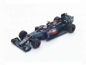 This McLaren Honda MP4-31 `Halo` test (Jenson Button – Italian GP 2016) Resin Model Car is Black and features comes in a display case. It is made by Spark and is 1:43 scale (approx. 11cm / 4.3in long).