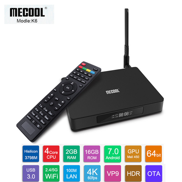 mecool k6 dvb s2 – t2 – c android 7.0 tv box 2gb ram 16gb rom 2.4g + 5g wifi usb3.0 bluetooth 4.1 100m lan 4k media player
