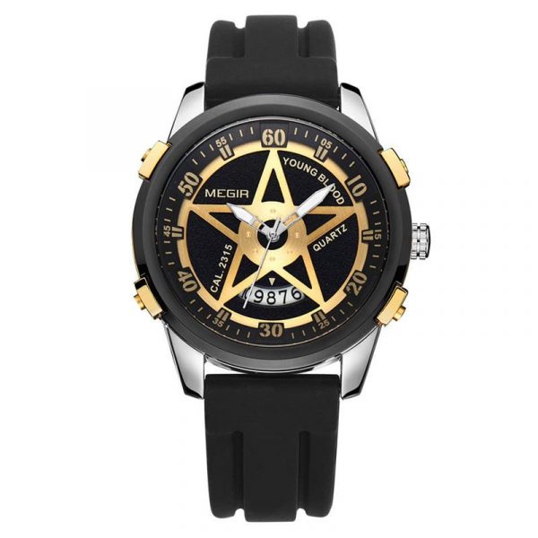 SpecificationBrand:MEGIRModel NO.:1073Item Type:Wrist WatchMovement:QuartzCase Shape:RoundDial Window Material: GlassBand Material:SiliconeClasp Type:Needle BuckleStyle:Fashion, CasualGender:MaleDial Display:AnalogWater Resistance:Life Waterproof,not for shower,swim and dive.Features:Time Display, Date DisplayDial Diameter:About 45.3 mmCase Thickness:About 13 mmBand Width:About 22 mmBand Length:About 230 mmBattery Type:SR920SWPackage Included:1 X MEGIR WatchNotice:The picture is only for reference,please consider carefully before purchase.