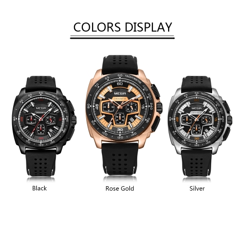 It has three small dials inside, which are a 24 hours dial, a minute chronograph and a second chronograph.