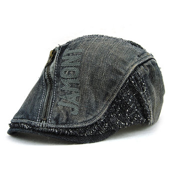 Men Women Cotton Denim Zipper Beret Cap UV Protection Sun Visor Flat Peaked Hat