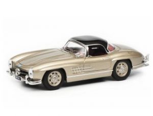 This Mercedes Benz 300 SL Roadster Hardtop (1957) Diecast Model Car is Champagne Gold and has working wheels and also comes in a display case. It is made by Schuco and is 1:43 scale (approx. 10cm / 3.9in long).