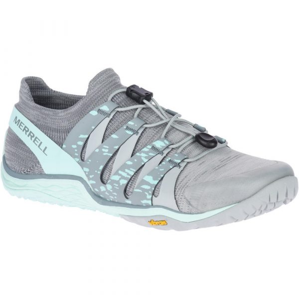 Wear these Merrell Women’s Trail Glove 5 Laced Running Trainers when going out for running. A 360-degree sock-like fit is provided by its 3D knit upper. The M Select FRESH antimicrobial agents remove unpleasant odour from them. Whether you run on an extremely rough or slippery ground the Vibram TC5+ will handle the traction well., 3D knit upper for 360-degree sock-like fit. Traditional lace closure. Hyperlock TPU film heel counter for security., M Select FRESH antimicrobial agents reduces shoe odor. Breathable mesh lining . Integrated footbed ., Molded nylon arch shank. Merrell Barefoot 2 construction for enhanced proprioception and stability during variable movement. TrailProtect pad offers additional support off road., Vibram TC5+. Stack Height (heel/toe): 11.5/11.5mm; footbed: 0mm; insole: 3mm; midsole: 4/4mm; sole: 1.5mm web 3mm lug.,