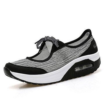 Mesh Rocker Sole Platform Lace Up Sport Casual Shoes