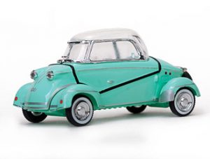 This Messerschmitt TG500 Tiger Hardtop (1958) Diecast Model Car is Green and has working wheels and also comes in a display case. It is made by Vitesse and is 1:43 scale (approx. 7cm / 2.8in long).