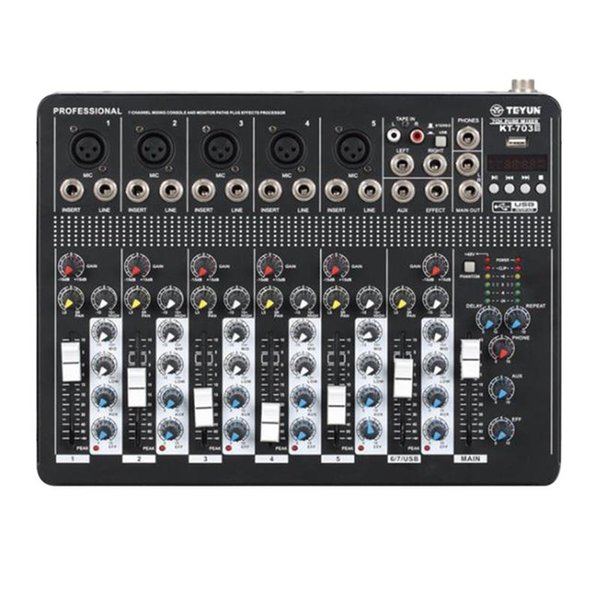 Microphones Sound Card Audio Mixer Board Console Desk System Interface 7 Channel Usb Bluetooth 48V Power Stereo (Us Plug)