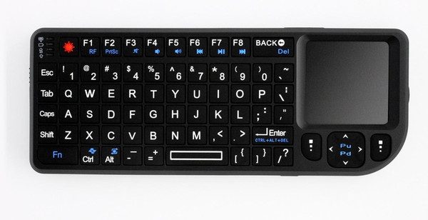 2.4ghz wireless mini qwerty keyboard,touch pad and presenter combo plug and play usb keyboard item no.: k808 1)2.4ghz wireless mini qwerty keyboard,touch pad and presenter combo. 2)receive and send by usb,plug and play 3) measurements (l x w x h): 151mm x 59mm x 12.5mm 4) weight (grams): 100g / 0.22 pound 5) rechargeable lithium battery or 2*aaa dry battery 6) system support: windows 2000/xp/vista/7/win ce linux/-android/-mac