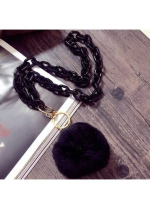 Mirror Pendant Black Furry Ball Decorated Sweater Necklace FREE Shipping & 30 Days Easy Return