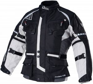 600 D Polyester AirVent ventilation zips reflectors Hitex® membrane: 100 % waterproof, 100 % windproof detachable thermo lining shoulder and elbow protectors certified according to EN 1621-1 lots of adjustments 4 outer pockets, 3 inner pockets prolongable sleeve (about 5 cm)