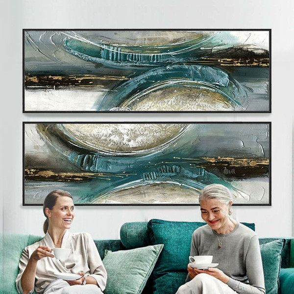modern abstract painting horizontal rectangle long posters and prints canvas wall art living room decoration pictures emerald