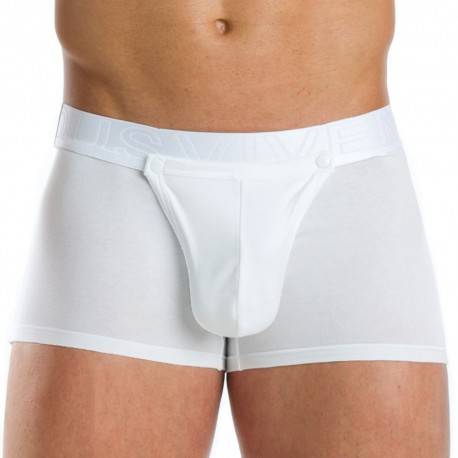Sexy low-rise cotton boxer featuring a removable front pouch. Snap fastners to quickly reveal your intimacy. Modus Vivendi elastic waistband.