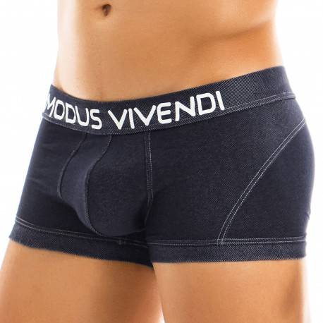 Low-rise boxer made from a soft and comfortable blend of cotton and microfiber with a denim effect. Sexy fitted cut. Lined shaped pouch for more comfort. Branded elastic waistband.