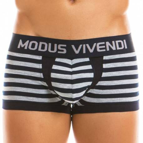 Low-rise boxer made from soft and comfortable striped cotton. Simple and fitted cut. Contrast trim. Lined shaped pouch. Modus Vivendi wide elastic waistband. Made in Greece.
