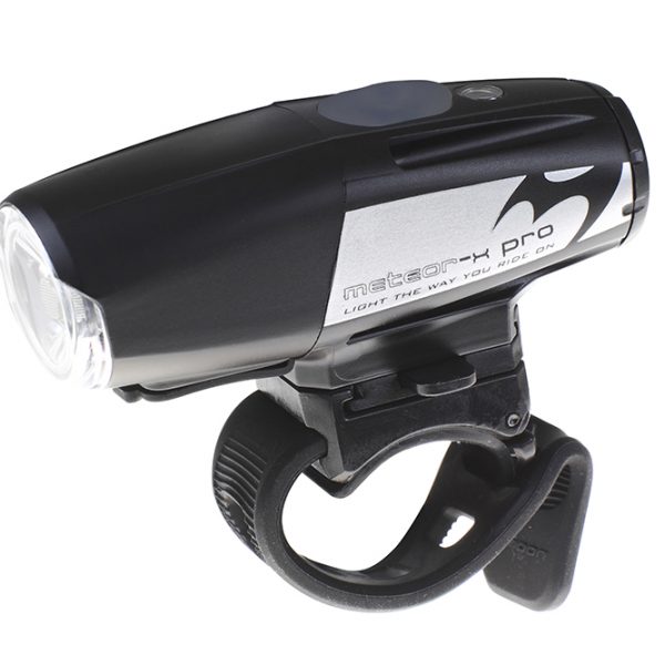 The Meteor-X Auto Pro combines a compact chassis with superior light output making it ideal for every day commuting whatever route you take.The Meteor Auto X front generates up to 700 lumens of lightMeteor Auto Pro features 1 Cree XML L2 LED.The circuit board on which the Cree LED are mounted is copper coated. The copper coating helps manage the temperature and aid performance.To aid in reducing the temperature in the system, the Meteor Auto Pro comes equipped with a CNC heat sink to help disperse heat away from the light.The Moon memory mode function ensure that when you turn you light back on, it returns to the last selected modeThe double shot daytime flash mode provides an ultra-bright option combined with exceptional run times ideal for standing out during the day and nightThe integrated light sensor means the light can be set to auto mode which means the light will turn and off automatically in relation to the surrounding light conditions.The quick release batteries and magnetic battery cover mean the batteries can be swapped quickly when on the trail.The high precision optical lens provides high clarity lightThe design the light is visible from the side as well, with a beam angle of 84 degrees.Water resistant