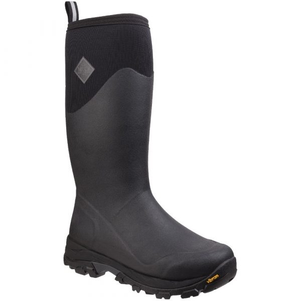 Ideal for riders who want great style as well as a durable hard-wearing riding boot the men’s Arctic Ice wellington boots from Muck Boots have been beautifully designed with modern black accents to the opening and sides. Crafted from 8mm CR Flex-Foam and featuring a warm and insulating fleece lining. This tough yet elegant pair can be easily washed clean with a hose. Complete with strong textured sole to help prevent wear and tear from the friction of the stirrups., 8mm CR Flex-Foam. Warm Fleece Lining., Extended Rubber Exterior. New Midsole., Vibram Arctic Grip Outsole. Spandura., ,