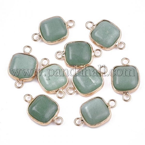 Natural Green Aventurine Links/Connectors, with Brass Findings, Square, Golden, Size: about 21mm long, 13mm wide, 5~5.5mm thick, hole: 2.5mm.