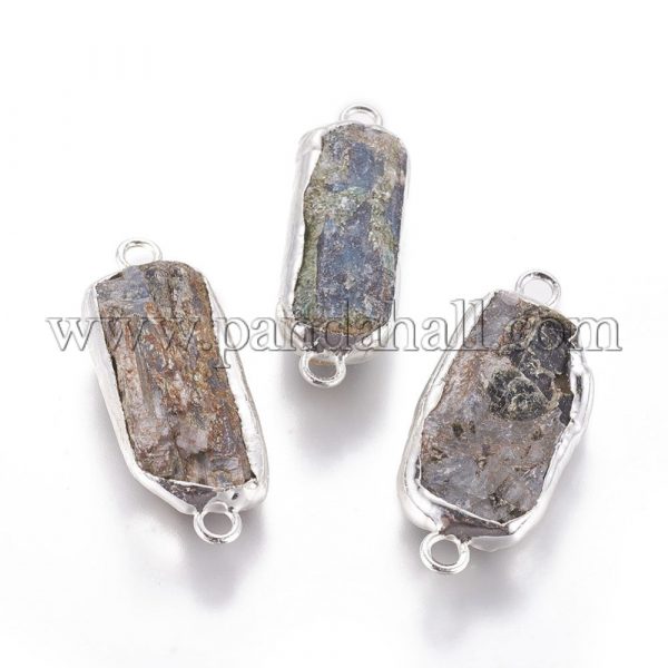 Natural Kyanite/Cyanite/Disthene Links/Connectors, with Brass Findings, Rectangle, SilverSize: about 12.5~17mm wide, 37.5~39.5mm long, 7.5~13.5mm thick, hole: 2.8~3mm.