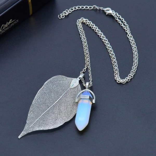Natural Leaf Necklace Hexagonal Crystal Pendant