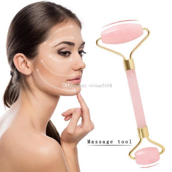 Natural Pink Jade Facial Massage Roller Anti Wrinkle Healthy Face Body Head Foot Nature Beauty Tool Rose Jade massage stick gift DHL