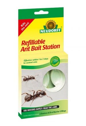 Active ingredient content 0.015 % w/w spinosad Refillable ant bait stations to control ants on patios, balconies, paths as well as indoors Ants will carry the bait directly into the nest, where it exterminates the entire nest Good visibility of bait consumption due to transparent lid Certified for organic use Application: Place the bait box very close to ant nests or directly onto ant trails To control large ant nest use a minimum of two ant bait stations Packaging: 2 bait stations, 20 ml ant bait liquid