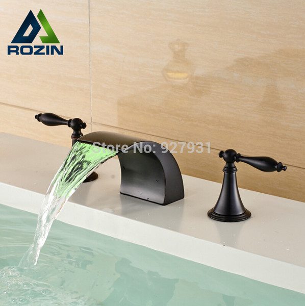 new arrival widespread bathroom vanity sink faucet color change led dual handles basin sink mixer faucet