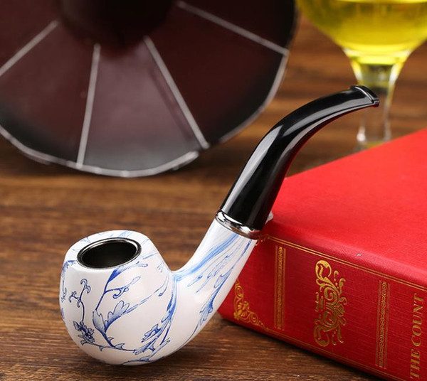 New Blue and White Porcelain Bakelite Pipe 145mm Portable Removable Individual Wood Tobacco Fittings Delivery