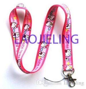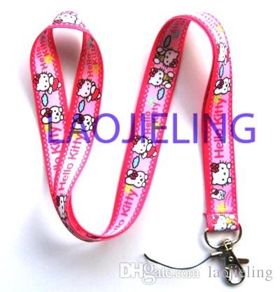 NEW Wholesale 20 pcs Lanyard pink stripes Anime Cute hello kitty Mobile Phone lanyard Keychain straps charms free shipping