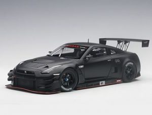 This Nissan GT-R Nismo GT3 (2015) Composite Model Car is Matt Black and features working wheels and also opening doors. It is made by AUTOart and is 1:18 scale (approx. 24cm / 9.4in long).