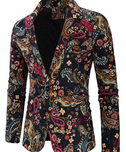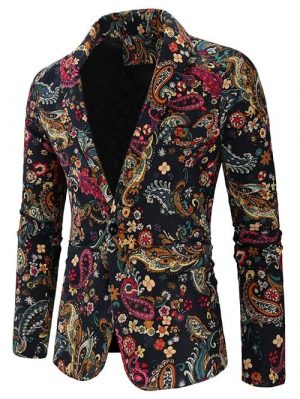 Be the first to review “One Button Paisley Print Shawl Collar Blazer”