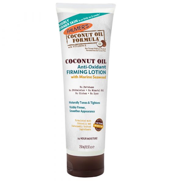 Palmer’s Palmer’s Coconut Oil Formula products contain ethically and sustainably sourced Coconut Oil and Tahitian Monoi, infused with Tiare flower petals. These raw natural ingredients deliver luxuriously rich moisturisation for decadently pampered skin. Palmer’s Coconut Oil Formula Anti-Oxidant Firming Lotion uses the inherent skin-toning benefits of plant-based seaweed, potent botanicals and coconut oil to help ease fluid retention, encourage circulation and give skin a smoother, more toned and healthier-looking appearance.No Parabens, Phthalates, Mineral Oil, Gluten or dyes. Palmer’s is against animal testing.