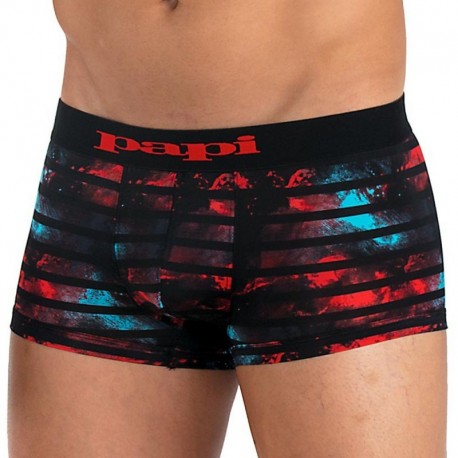 Low-rise boxer made from breathable 4-way stretch microfiber for a smooth fit that molds the body’s contour. Striped and colorful print. Moisture wicking pulls sweat away from the body to stay cool and dry. Fully lined contour pouch. Perfect for workout. PAPI elastic waistband.