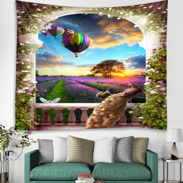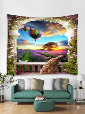 Peacock Hot Air Balloon Print Art Decoration Wall Tapestry