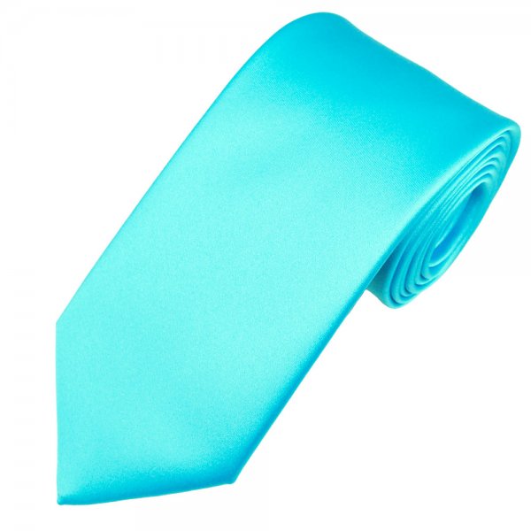 Plain Aqua Blue Satin Tie Luxury Satin Tie 7.5cm Width at Widest Point