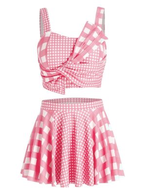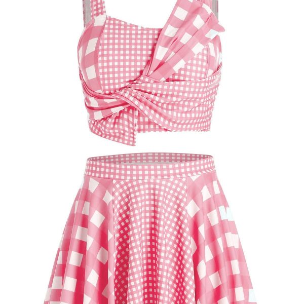 Plus Size Plaid Design Asymmetric Tankini Swimsuit