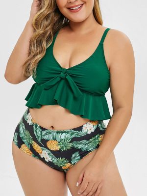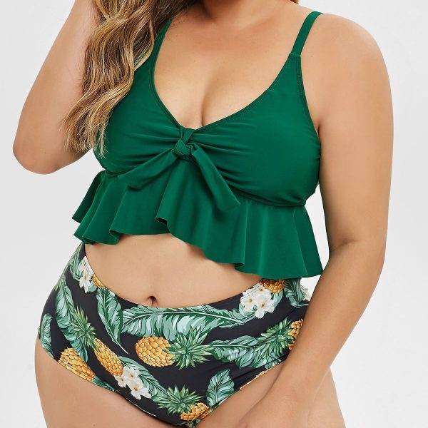 Plus Size Polka Dot Pineapple Floral Ruffle Bikini Set