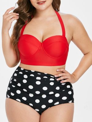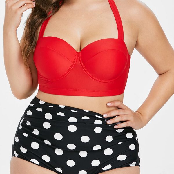 Polka Dot Plus Size Halter High Waisted 50s Bikini